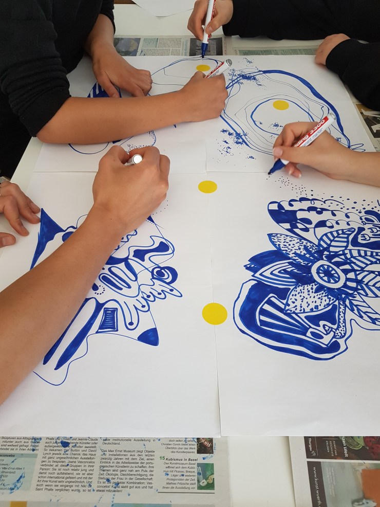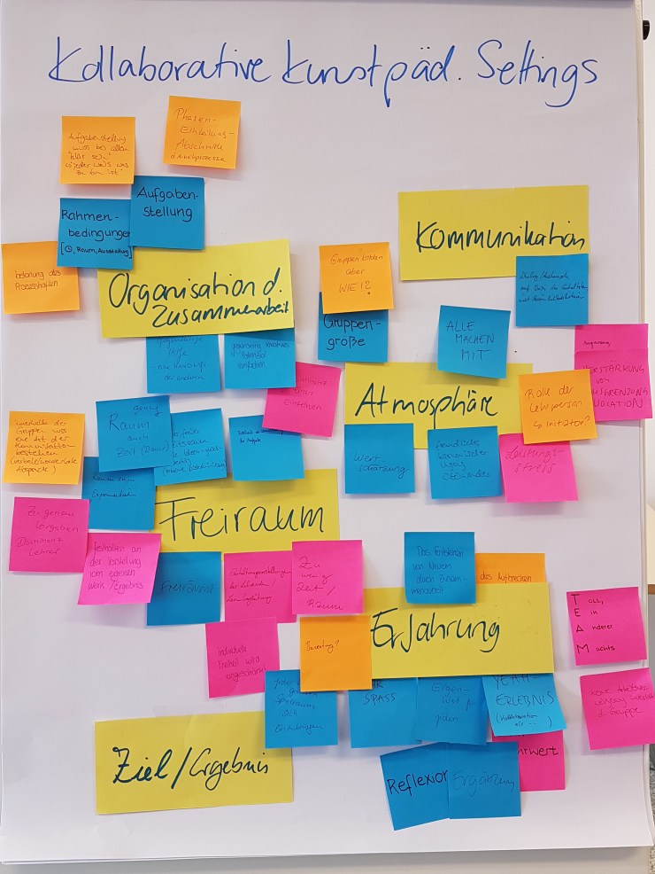 Im Seminar fragten auch wir ausgehend von künstlerischen Beispielen und eigenen Erfahrungen nach den Formen und Funktionen von Zusammenarbeit in kreativen und künstlerischen Prozessen. Wir erprobten und erfanden Methoden und Formate kollaborativen künstlerischen Handelns, suchten nach Worten, um diese zu beschreiben, und entwickelten eigene Ideen und Konzepte für den Transfer in kunstpädagogische Kontexte.